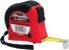 Эргономичный корпус рулетки выполнен из ударопрочной пластмассы, частично обрезинен. Эргономичное устройство рулетки включает два независимых механизма фиксирования ленты, что делает работу с рулеткой наиболее удобной. Измерительная лента имеет полимерное покрытие, стойкое к абразивному воздействию. Цена деления – 1 мм. Класс точности – 2. Предназначена для измерения размеров и расстояний.